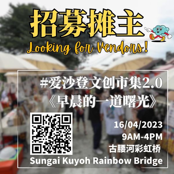 (莎阿南23日讯)“爱沙登文创市集 2.0”于4月16日再次登场,欢迎有兴趣的摊主报名参加。