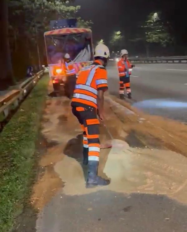 “车祸导致罗里泄露柴油,有可能会流入大道旁的排水沟,继而流入斯马兰河和贞德兰河,最终可能会影响到邻近的武吉淡杯滤水站。”