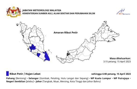 大马气象局今日在脸书贴文说,雪州涉及鹅唛、八打灵、乌鲁冷岳及雪邦县。