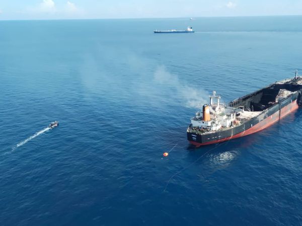 “此外,我们也寻求大马消拯局危险物品特别拯救部队(Hazmat)服务,进入仍在冒烟的船上搜寻,因为3名船员可能受困其中。”