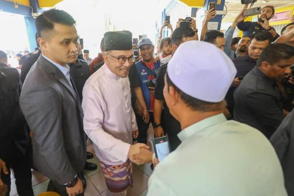 (瓜拉冷岳5日讯)首相拿督斯里安华今午到万津市议会路的美食中心用餐,吸引不少民众上前握手问好。