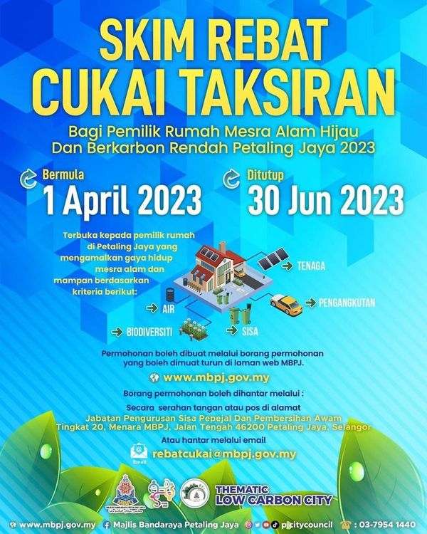八打灵再也市政厅在官方脸书帖文表示,这项门牌税回扣活动开放给所有符合资格的灵市业主,以根据既定的方式实践环保生活,鼓励市民以节能环保的方式减碳过活。