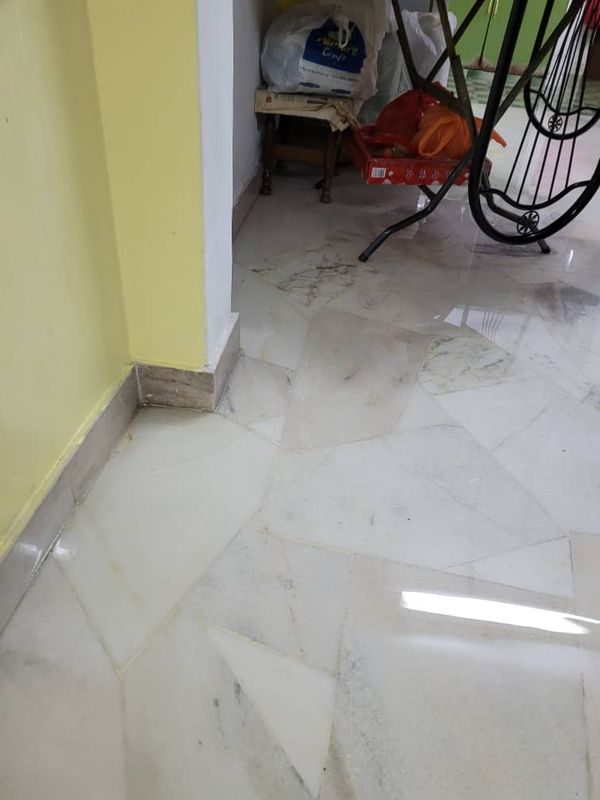 当天早上5时起来,就发现雨水进屋,从厨房流向客厅,水位在脚趾以上。