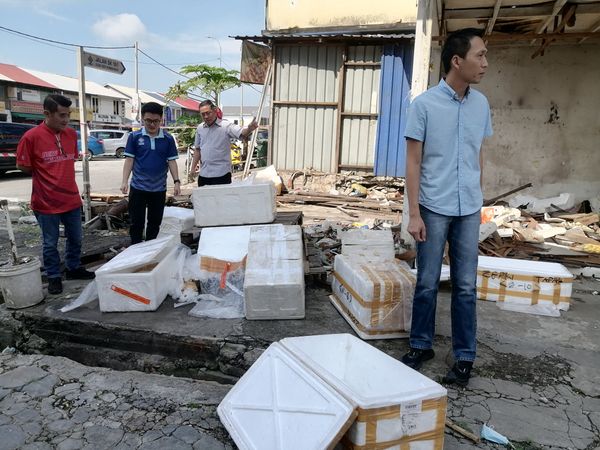 他说,附近商家闭路电视在周一(29日)晚上约11时半,拍到一男一女驾四轮驱动车,把一大堆的宝丽龙载入旧巴刹区丢弃。