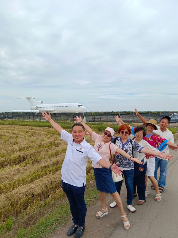 如今恰逢适耕庄稻田收割期,“飞机场”周遭的稻田皆已收割完毕,许多游客也趁机进入旁边的稻田,以便合影时更靠近飞机,有些脑筋转得快的业者,更是提供航拍照片服务。