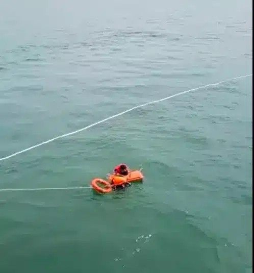 “所幸,两人穿着救生衣和紧握鱼桶盖在海上漂浮,以等待救援。