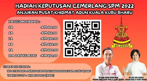 凡考获5A的学生可获得100令吉现金,6A则获得150令吉、7A获得200令吉、8A获得250令吉。