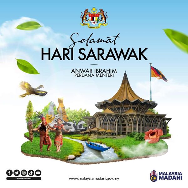 “我代表政府祝福所有砂拉越人砂拉越日快乐。”