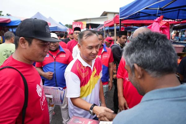 雷健强周四晚上与竞选团队来到士罗嘉花园(Taman Seroja)夜市拜票,派发宣传单给小贩和民众,以传达自己今次上阵双溪比力州议席的讯息。