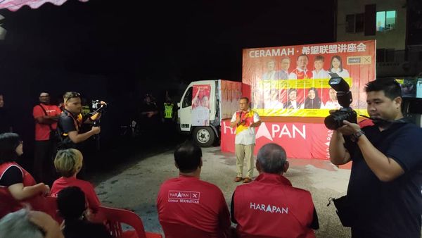 他接着以华语现场念出:“马来人、印度人、华人,我们都是一家人”,赢得在座选民的热烈掌声和响应。