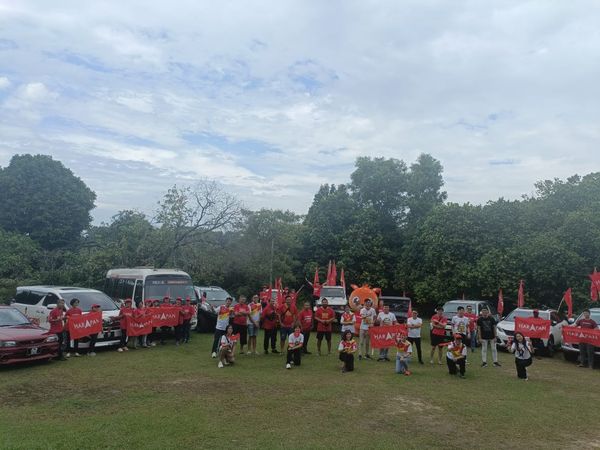 共有11辆插满希盟红旗的车队今早10时许在沙登大学岭的Mayday Garden集合出发,由“山鸡起义”的抗疫的小型客货车“打头阵”,车队川行在史里肯邦安乡区大街小巷。领队的行动党无拉港特别行动队队长李凯鸣使用播音器,沿途呼吁选民支持王诗棋。