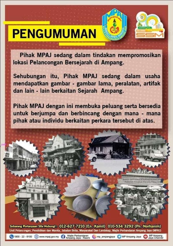 (莎阿南17日讯)安邦再也市议会(MPAJ)正在推广安邦区内的历史性旅游景点,并欢迎民众提供相关旧照常与信息等。