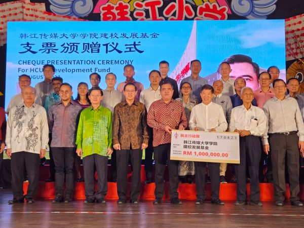 “韩江是民办的学校,对我们的华社意义重大,我代表民主行动党捐助100万令吉予韩江传媒大学学院兴建新大楼,也希望韩江大学学院能够顺利落实新大楼,2年后我们再来见证和拜访。”