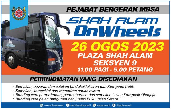 (莎阿南23日讯)莎阿南市政厅(MBSA)本周六(26日)将在莎阿南第9区的莎阿南商场(Plaza Shah Alam)的停车场开设流动柜台,方便市民办理各项事务。