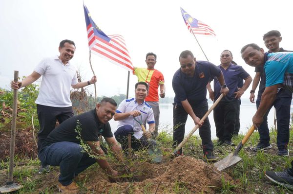 众人在瓜拉雪兰莪八丁燕带的结合储存河水系统(ORS)沿岸,种植了各20棵椰树和20棵小叶榄仁树。