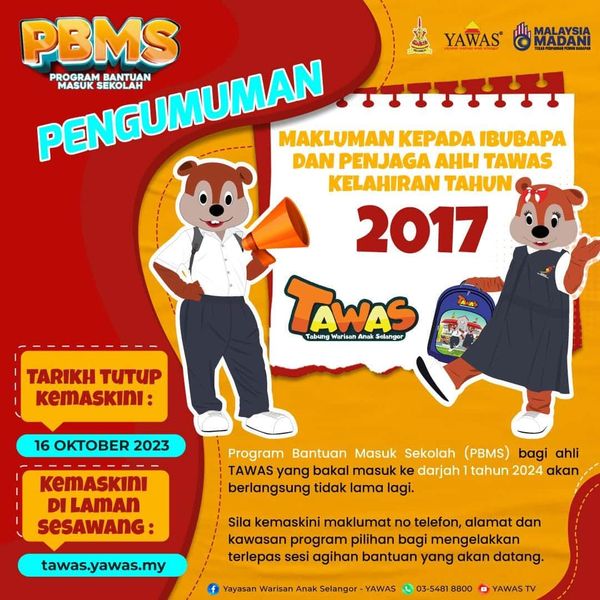 (莎阿南5日讯)雪州新生儿基金(TAWAS)呼吁2017年出生的会员家长,为孩子更新资料。