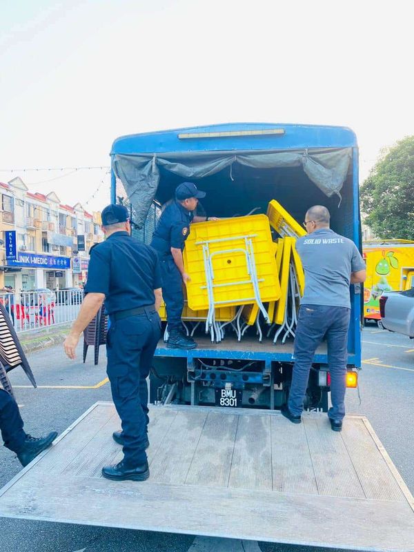 士拉央市议会在脸书发帖表示,由于这些小贩营在结束营业后并没有清理营业现场,因此市议会9月13日在万挠Medan Puteri展开7项取缔行动,援引2007年士拉央市议会小贩条例充公这些货物。