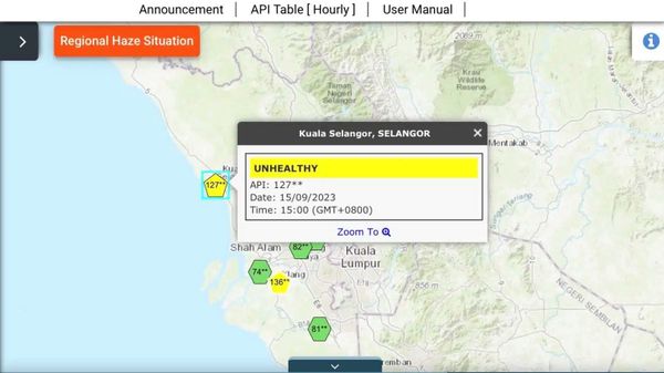 根据环境局官网显示,佐汉瑟迪亚的空污指数为136点,瓜雪的空污指数则为127点。
