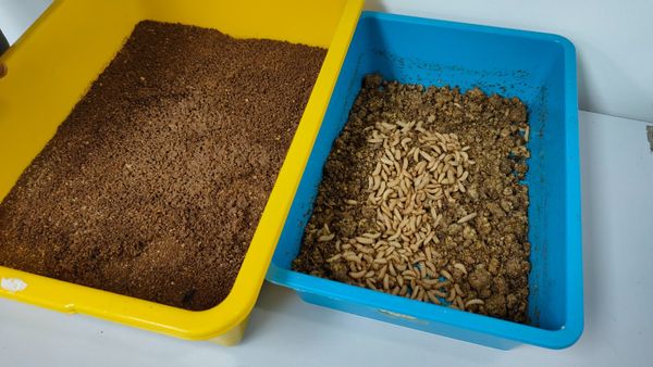 郑馨彦提到,过去最环保方式处理厨余是用来堆肥,但堆肥要等很久,若比例没控制好会发臭及难以持续,黑水虻幼虫恰好能克服这些衍生问题,以永续方式解决厨余问题。