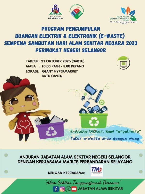 这也是配合2023年国家环境日举办的一项活动,于上午10时至下午3时,在峇都急巨人霸市进行回收。