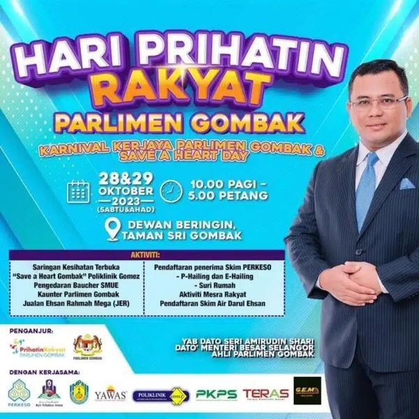 “活动包括免费健康检查、益山兹悯市集、职业嘉年华,由社险和雇主公开面试、分发雪州乐龄亲善基金 (SMUE) 购物,以及免费水计划 (SADE) 注册。”