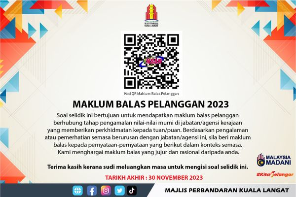 瓜冷市议会为致力提高服务效率,今日特在官方脸书呼吁民众,参与该会的2023年客户回馈调查问卷。