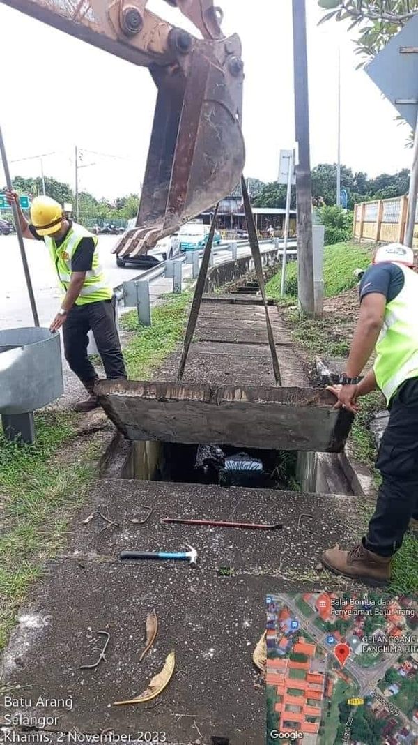 (莎阿南9日讯)雪兰莪煤炭山中学外的沟渠盖损坏掉落沟渠内,露出近8尺深的沟渠威胁学生安全,鹅唛县公共工程局已迅速行动重新铺上沟渠盖,保障孩子们的安全。