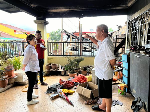 (莎阿南11日讯)甲洞帝沙再也花园排屋区周三(9日)清晨发生火灾,公正党武吉兰樟区州议员潘佩玲赶往灾区慰问灾黎。