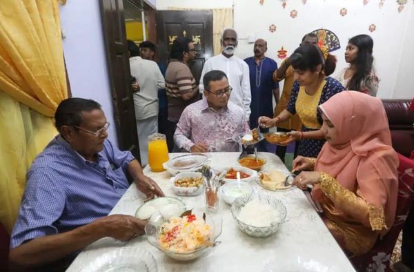 阿米鲁丁与太太也亲自拜访印裔居民协会主席V苏巴马念的住家,并与V苏巴马念的家人享用油米饭和红烧鸡。