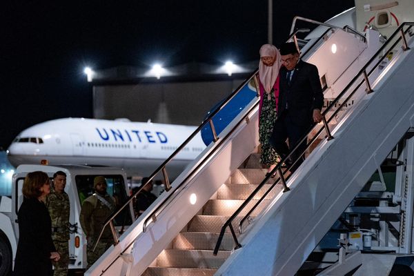 首相安华与夫人拿督斯里旺阿兹莎医生的专机在晚上9时37分(大马时间是14日下午1时37分)抵达加州,随行者包括外交部长拿督斯里赞比里、通讯及数码部长法米。