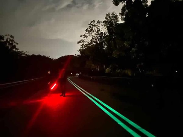 他说,这种光源可以来自阳光或被吸收的车辆灯光,然后在夜间重新发光,并在夜间可见。