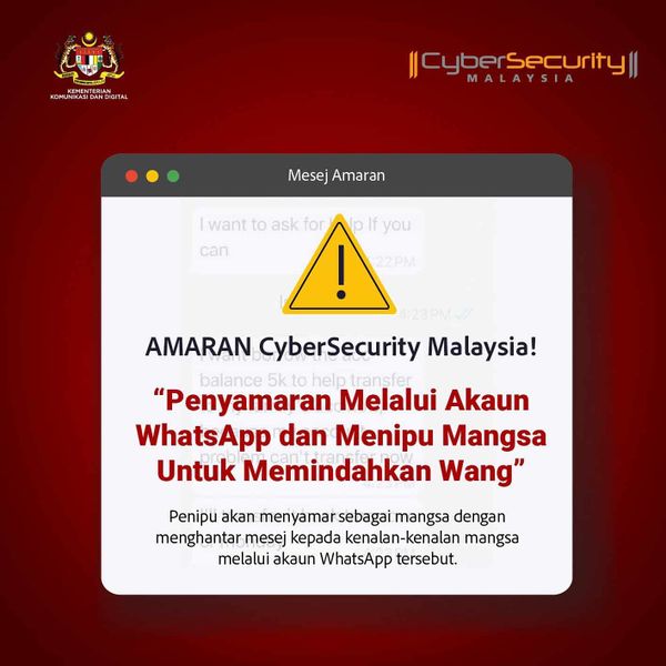 (吉隆坡7日讯)大马网络安全机构今日发出警告,提醒民众有不法分子正通过WhatsApp账号冒充熟人,并诱骗受害者转移资金。