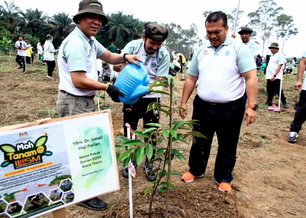 莫哈末乌兹尔早前与大马森林研究院(FRIM)总监依斯迈巴兰和逾300名参与者,在大马统计学(ILSM)培训学院(ILSM)礼堂附近占地1.7英亩的土地进行植树活动。