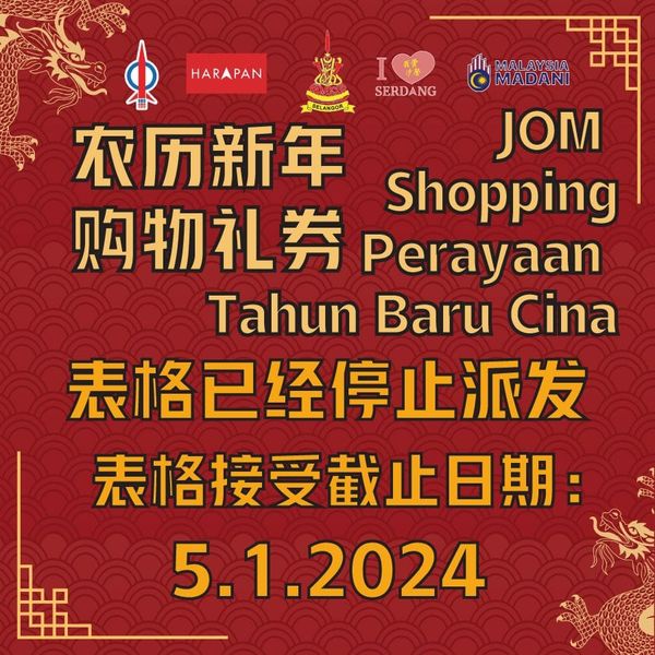 (莎阿南21日讯)史里肯邦安区居民注意咯!由于申请人数激增和避免让更多人失望,史里肯邦安州议员王诗棋服务中心已经停止发放领取农历新年购物券的申请表格。