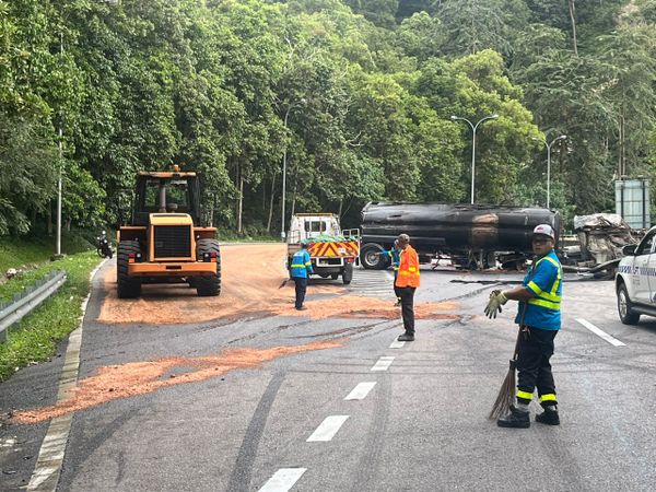 (莎阿南23日讯)云顶森巴(Genting Sempah)今早发生车祸泄漏柴油,雪兰莪水务管理局(LUAS)迅速展开行动,避免附近水源受到污染!