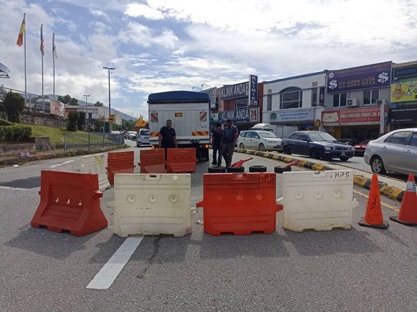 (莎阿南29日讯)万挠镇2路(Jalan Bandar Rawang 2)局部路段下陷,士拉央市议会(MPS)出于安全因素,已使用塑料障碍物封锁部分路段,避免民众误坠路洞。