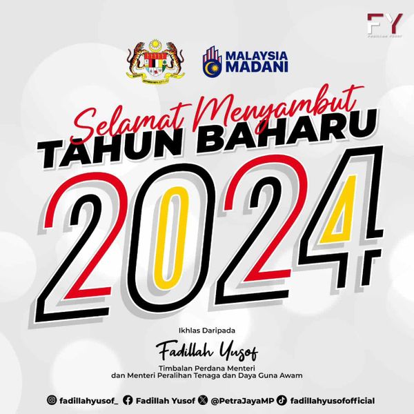 他在脸书专页上载视频为民众献上元旦祝福,并祝愿马来西亚在2024年维持和平、进步与和谐。
