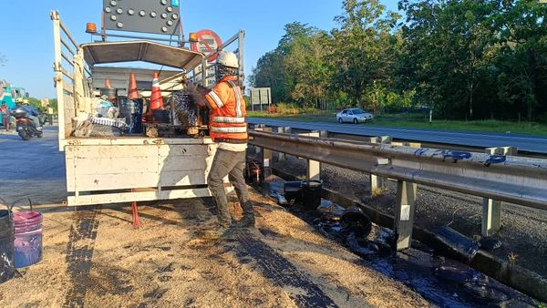 “雪州水务管理局马上与南北大道公司管理层展开清理和后续工作,大道公司也在现场沿路撒放木屑,控制漆料流入附近的排水沟。”
