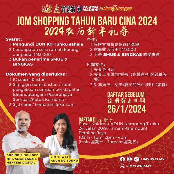 📍 注册于: Pusat Khidmat ADUN Kampung Tunku