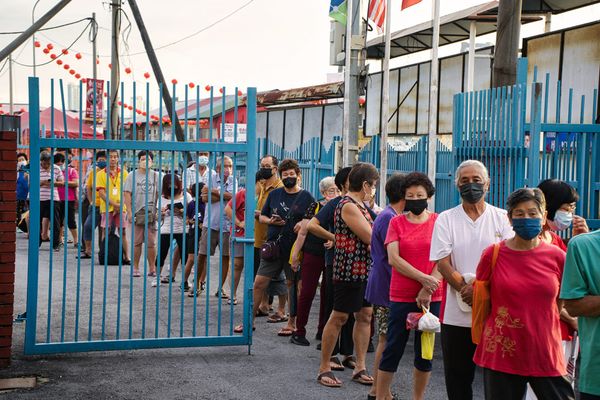 (莎阿南26日讯)史里肯邦安区州议员王诗棋服务中心昨日进行派发700公斤猪肉登记,上午6时即吸引许多居民排等候。