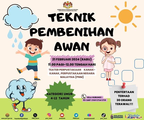 大马气气象局今日在脸书贴文说,这活动于上午11时至中午12时,在国家图书馆的儿童院举行,只限30人。