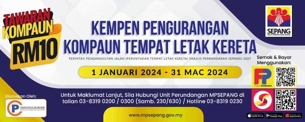 雪邦市议会在脸书发帖表示,这项罚单折扣优惠即日起至3月31日,每张停车罚单的罚款额为10令吉。