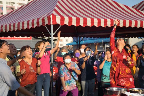 “超过百名居民与我们一起拜祭,大家一起焚香、许愿、抛年糕,祈求今年风调雨顺、国泰民安。”