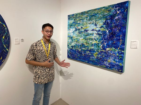 现年24岁的抽象艺术新锐郑竣荣原是从事海鲜批发,由于不甘于放弃自己自小热爱的艺术,去年上半年便从霹雳离乡背井到吉隆坡,义无反顾地在GMBB文创商场开设个人画廊,成为专职画家。