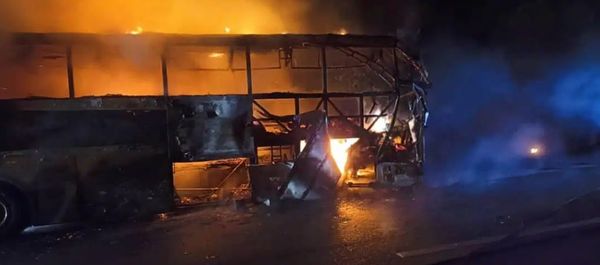(双溪大年17日讯)长途巴士与拖格罗里相撞后失火,受困在车上的巴士男司机活生生被烧死!