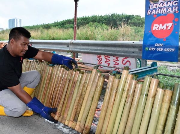 (马六甲9日讯)林梦岸(Limbongan)一名商人为了与弱势群体分享美食,于开斋节期间,以每根7令吉的价格出售一支竹筒饭。