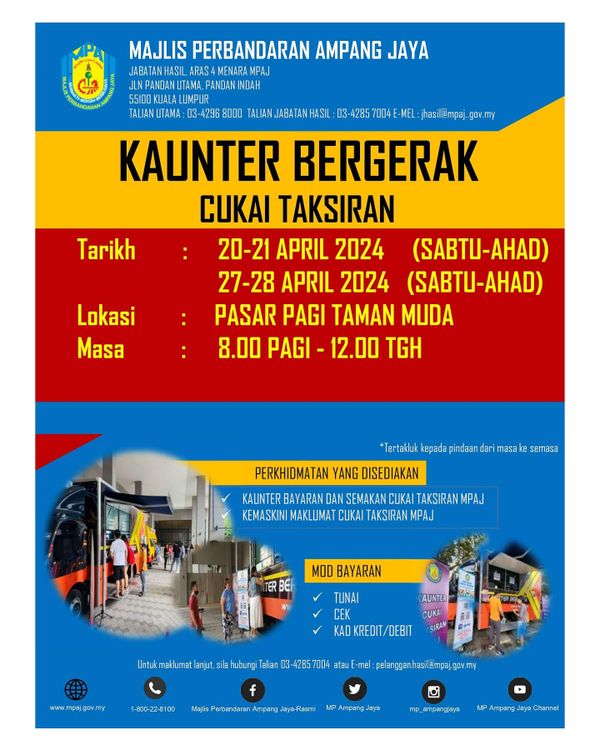 欲知详情的民众可联系03-42857004,或电邮至pelanggan.hasil@mpaj.gov.my