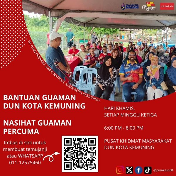 他也呼吁凡有意登门求助的民众可事先透过WhatApp预约:011-12575460。