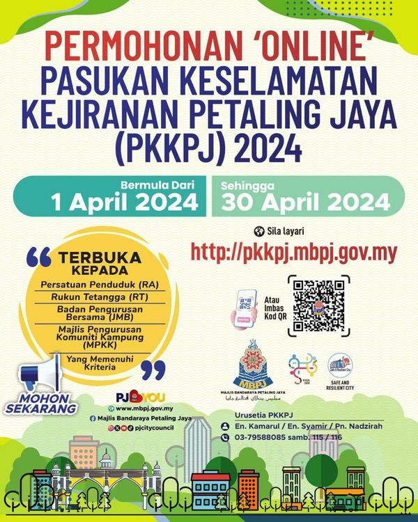 (莎阿南16日讯)八打灵再也市政厅2024年“八打灵再也邻里安全队”(PKKPJ)拨款,现在已经开放线上申请了。
