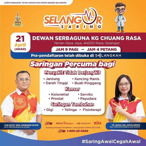 这也是雪州政府专门为州人民推出的六项举措之一,从免费筛查开始至金钱援助和支付。